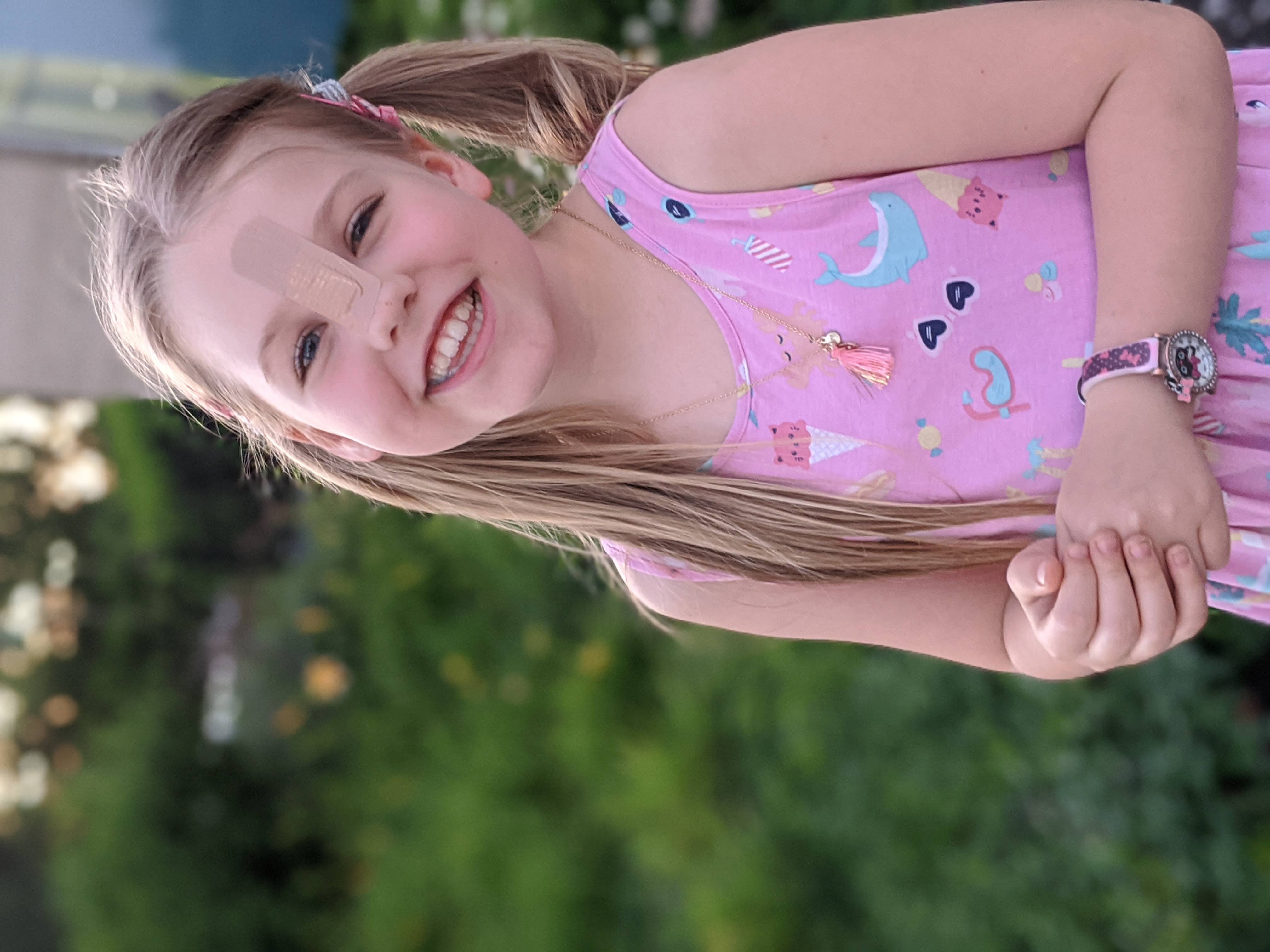 Ariela with a smile in spite of four stitches after a bad fall