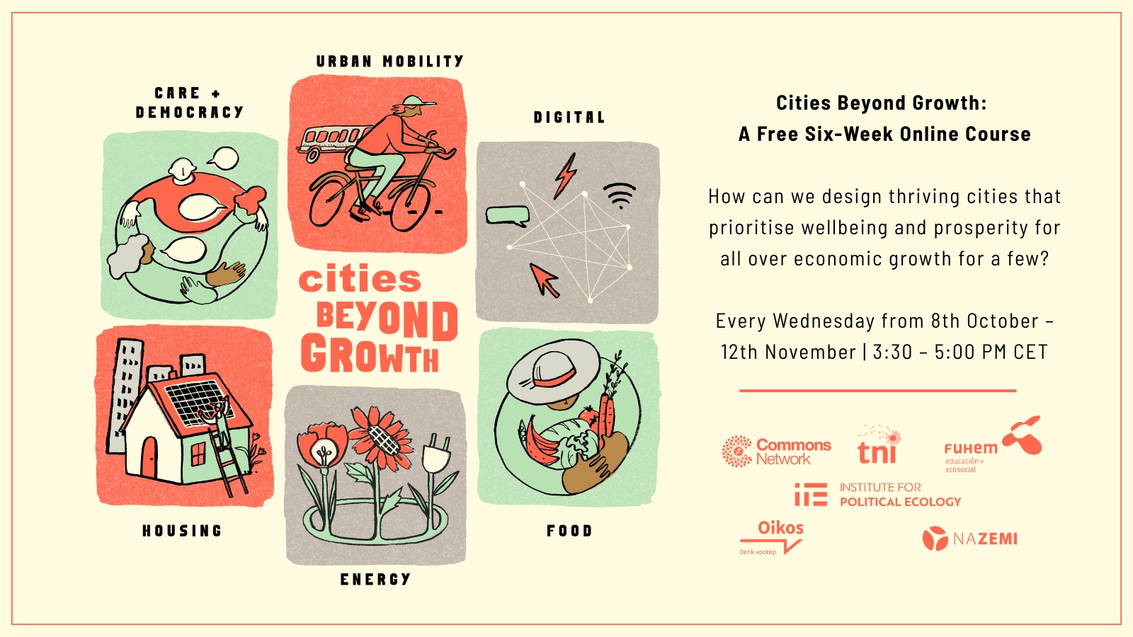 Before the course begins, we’d like to get to know you a little better through three short activities: You’ll find these questions on the Cities Beyond Growth course once you enrol. They’ll help us create a more connected learning community from the start.