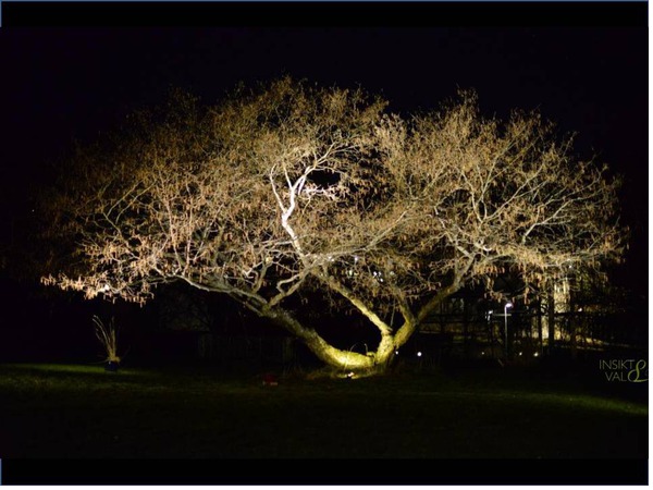 Så här fin blir den här imponerande Hasseln med belysning. Det är bara tre LED-ljuskällor som gör jobbet; Scope (4,5W) och Big Scope (7W) i grenverket och en Nero (5W) vid stammen.