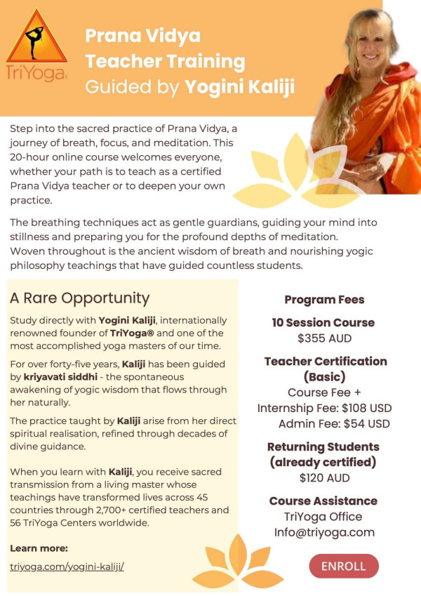 Subject: Online Prana Vidya Teacher Training with Kaliji