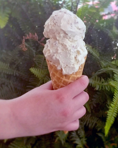 Premium vanilla ice cream with cinnamon sugar swirl and crumb cake pieces. Available at Charley Creek Inn Ice Cream