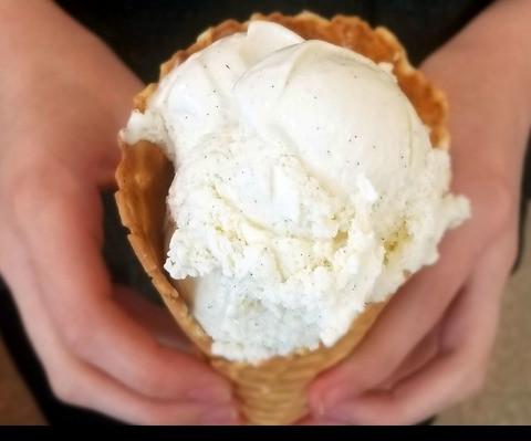 Premium vanilla ice cream with ground vanilla beans. Available at Charley Creek Inn Ice Cream