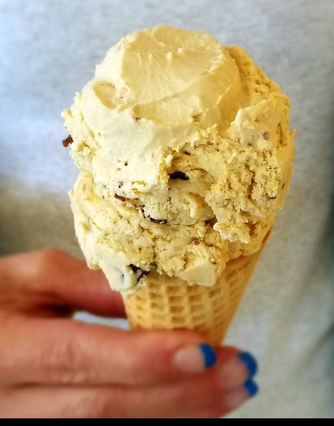 Caramel ice cream swirled with salty caramel and chocolate covered pretzels. Available at Charley