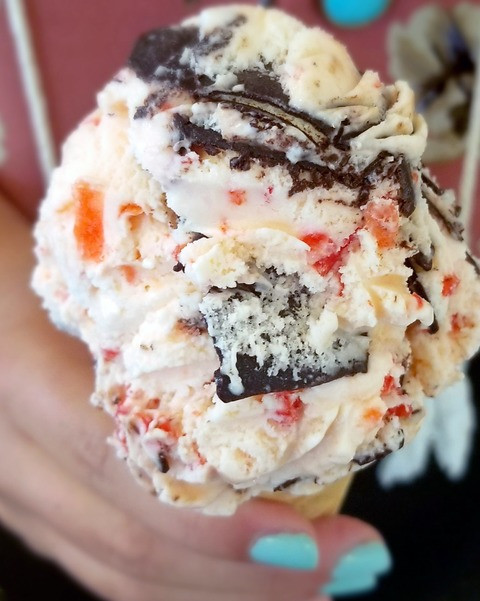 cherries and a thick fudge ripple blended into a creamy amaretto ice cream. Available at Charley Creek Inn Ice Cream & Candy