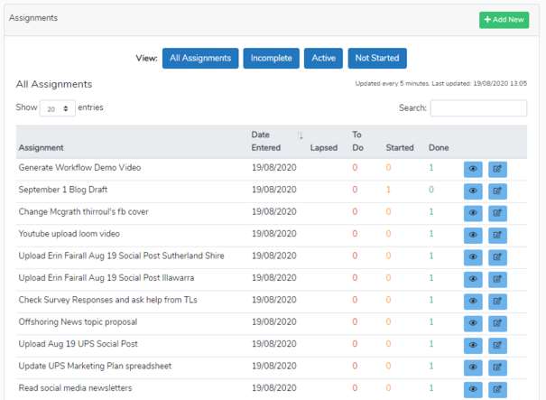 We have developed a workflow system where each global member records their activity. We can track how many tasks they can accomplish in a day and how fast they are able to finish them. From there we are able to look at their capacity levels and daily productivity. The system is very user-friendly. As you can see in the image below, our team can easily track their active assignments, incomplete tasks and projects they have not yet started.