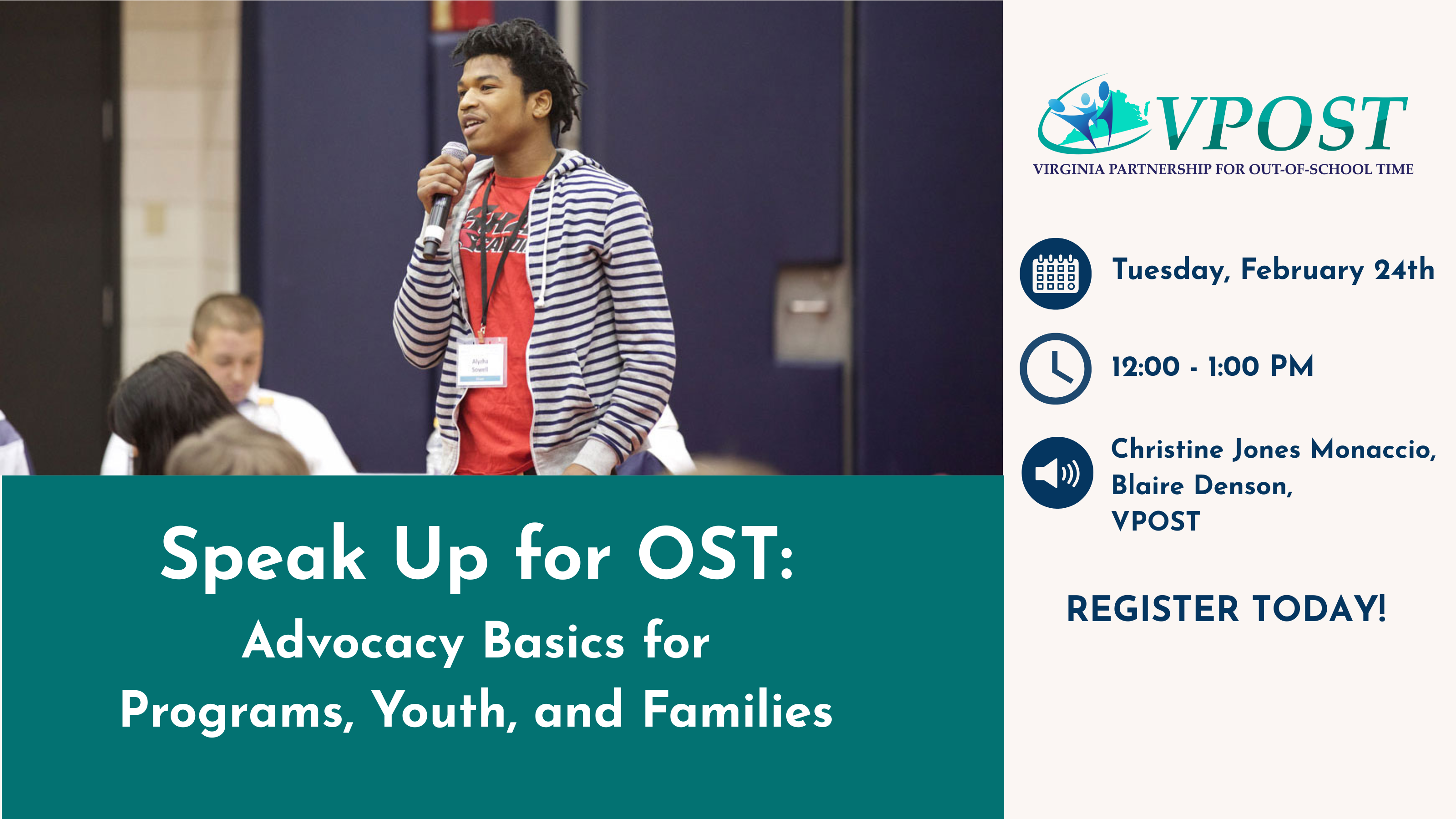 Advocacy starts with knowing your story and feeling confident sharing it. In this interactive one-hour session, participants will explore what advocacy looks like in the out-of-school time field and why youth and family voices matter. Together, we'll practice simple storytelling strategies that highlight the benefits and positive impact of OST programs. Participants will also learn how to support youth and parents in sharing their experiences. All attendees will receive youth and adult advocacy guides to support continued work beyond the workshop. |
