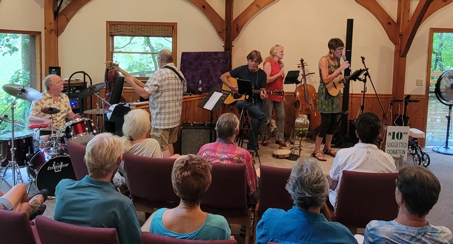 SUNDAY - August 13 - DEATH CAFE (2-4 PM) Thoughts on death you would like to voice - or maybe looking for ideas about death from others? Death Cafe this Sunday is the perfect fit. | | Wonder what you missed at the chapel last week? Here's a quick overview. In addition to our regular Writers Group and Yoga gatherings, chapel life also included the following: It was another fun gathering. The next drum circle will be August 30 at 7 PM. This one promises to be special as this is not only a "Full Moon" but a "Super Moon" and a "Blue Moon". | | SERVICE & POTLUCK Music by Ruth Henry followed by "Spiritual Community" Discussion facilitated by Jen Utley. | | And we all had a good time visiting during Potluck | | MOUNTAIN MUSE in CONCERT It may have threatened rain outside, but inside was pure fun inside as Mountain Muse (with guests Mario Renes on bass and Owen Devine on drums) delighted us was an afternoon of all Beatles music. | | | WEBSITE CONVERSION COMPLETE | Please begin using www.wayfarerschapelga.org to access the chapel website.