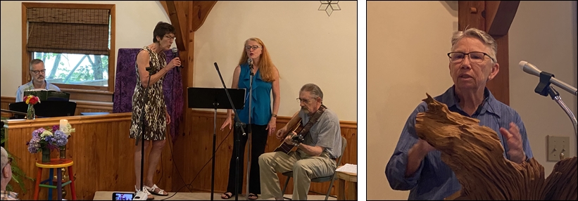 Renovating Rosemary's Chapel is a multi-stage project that starts with cleaning out the space. With only a few exceptions, everything GOES! The board has consolidated and staged the furniture, pictures, books, recordings, and objects that need to find new homes with members or a local charity. First, please know that we appreciate the many donations through the years to Wayfarers Chapel. It is time now for a new beginning. If you have donated items other than those currently in use in the main chapel that you would like to have back, please pick them up from RoseMary's Chapel by August 7th. On August 8th, following the Potluck dinner, we will have a silent auction to find new homes for the furniture, pictures, and other objects. Everything not claimed by a member will be donated to charity. Second, MANY books and recordings have been donated to the chapel through the years. We will keep a small library of books specifically related to and supporting the values of the chapel. We know that everyone has their own view of what books support us, SO .... we ask that if you haven't already, please take a few minutes to review the book collection following the guidelines below. How the cleanout process works: BOOKS & RECORDINGS: Currently, the chapel's entire collection of books and recordings has been boxed in RoseMary's Chapel and is available for viewing. Books & Recordings to remain with the chapel are on the low bookcase by the tables. Please do not remove any books from this shelf. -- Please DO take time to check out the remaining collection. If you see ANY BOOK or RECORDING in the boxes or on the corner shelves that you believe should remain with the chapel, please place them on the low bookshelf marked KEEP. If you see an item that you do not believe needs to stay with the chapel but that you would like, please place your name on a piece of paper into the book (sticking out the top so we can see it!) and place the book on the corner shelves. If no one else wishes the item to be part of the KEEP collection, it will be yours to take home August 8th. All books and recordings not claimed as part of the chapel's KEEP collection or by a member will be donated to charity August 8th. PICTURES & OBJECTS: Please remove any items that you have donated and would like to have back. All pictures and objects still present on August 8th will be part of the silent auction. All items not claimed in the auction will be donated to charity. FURNITURE: The fate of all furniture in RoseMary's Chapel will be determined August 8th in a silent auction. Pictures of the furniture are shown below. There are 4 metal folding chairs and 10+ stackable cane chairs. Everything else is single items. All items not claimed in the auction will be donated to charity. IF you are interested in one or more pieces of furniture but cannot be present on August 8th, you can contact a board member or a friend to bid for you.
