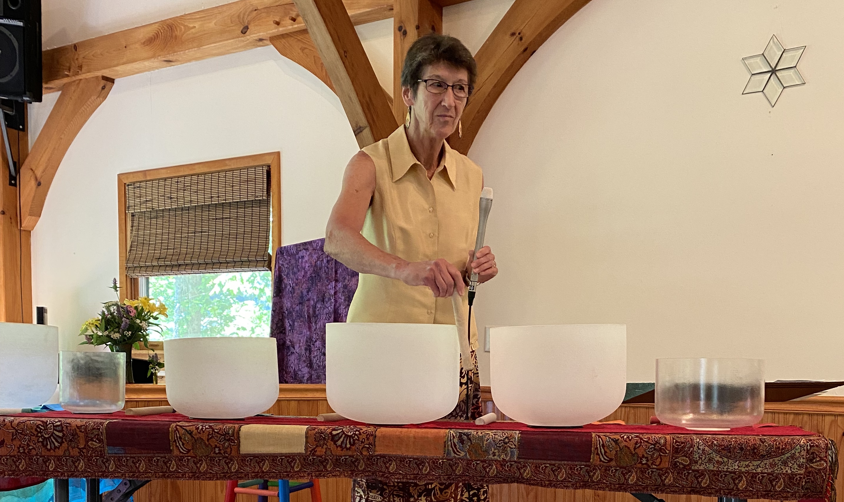 Potlucks will continue the 1st Sunday of each month - the other Sundays will be coffee/tea/snacks. If it rains, we will be inside; otherwise, all food service will be on the deck. Marie Dunkle led a great discussion on Vibration in Our Lives and gave us the opportunity to experience the power of vibration through the Crystal Bowls. Marie's talk & singing bowl experience will be available online in the talks section later this week. Her Singing Bowl Meditation will be available in the website's meditation section in a few weeks. |