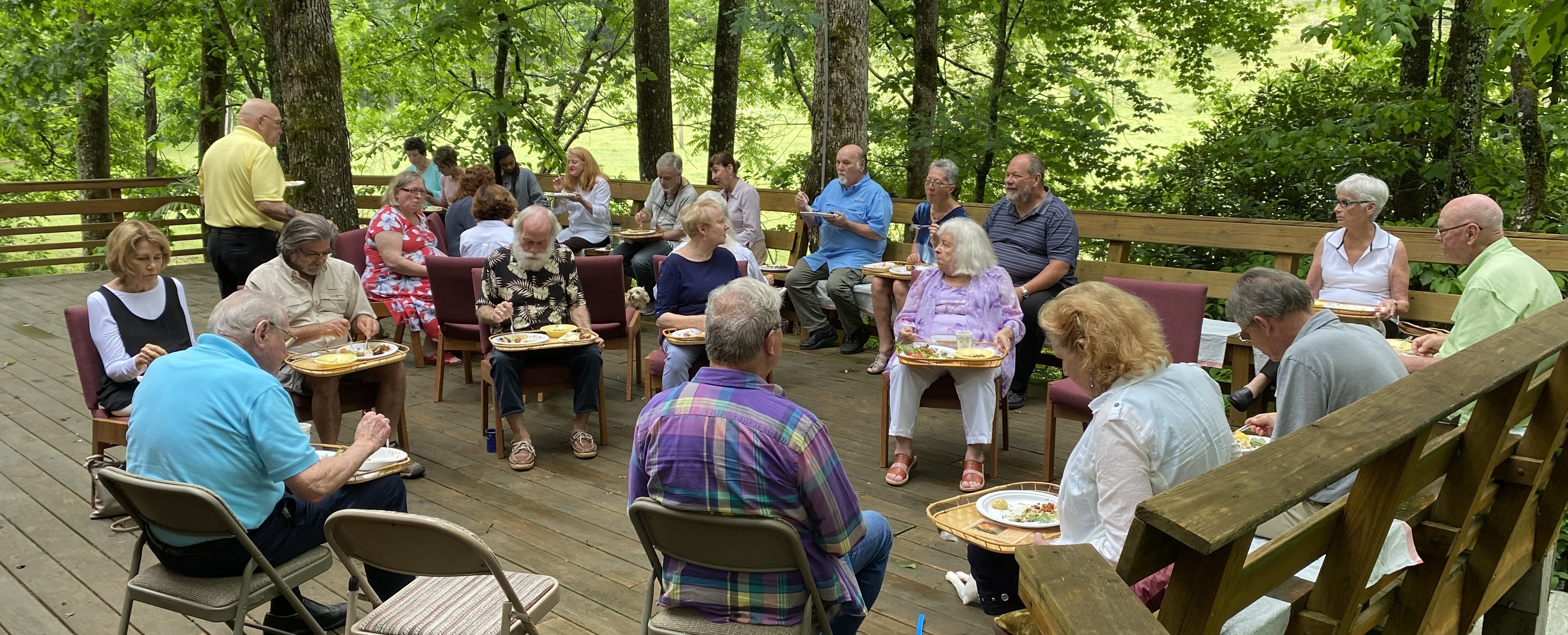 Tom Tyre's humorous, informative, and thought providing message "In Search of the Soul" should be available online by Wednesday at Sunday Talks. | | Tom's talk was followed by our First Sunday PotLuck Dinner. Good food and good friends enjoying the wonderful weather on the deck. What better way to spend the afternoon! | | THIS SUNDAY - JUNE 13 Our music this week is the beautiful guitar music of Crowe Capps.