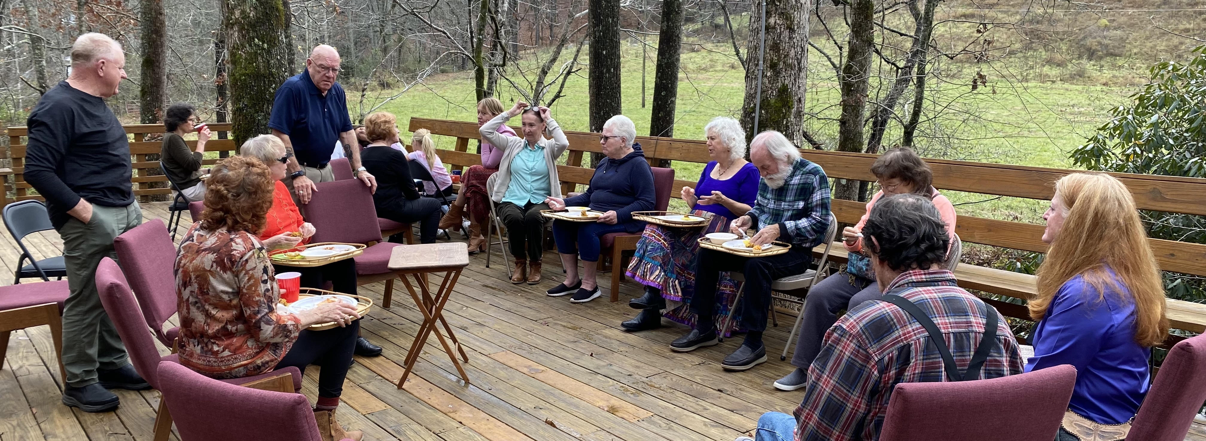 CELTIC CHRISTMAS at PARKER RANCH Parker Ranch will host a musical Celtic Christmas celebration on December 10th at 6 PM. Tickets for the event are available online at https://www.parkersranch.com/shop | | Chris Casses provided our music. Presenting ideas and opening to discussion, Garnett Nash helped us explore the question "Why do bad things happen to good people?" | | | After the service and the Annual Meeting of the membership, the rain cleared and the temperature was perfect for enjoying another wonderful potluck dinner on the deck. | | | FUND DRIVE for ROSEMARY's CHAPEL | We are at $4,002 on our way to our $7500 goal to fund the repairs and additions to RoseMary's Chapel. And it's a good thing as work on RoseMary's Chapel is zipping along. Last Sunday the deck was mostly complete and the flooring installation had begun. Can't wait to see where we are this Sunday! Work should be completed soon so keep those donations coming! If donating by check, please note "Building Fund" on your check. If donating by cash, please be sure to place the money in the Building Fund Basket. If using PayPal, please send an email to Barbara Beckham at apinklady@att.net requesting that the funds be directed to the Building Fund. THANK YOU. | | | Looked at from a spiritual standpoint, our discomfort in any given situation provides a signal that we are out of alignment with spiritual law and are being given an opportunity to heal something. Your greatest challenge is to not be distracted by that which happens in front of you, or is pulling on you or calling to you, but instead to find your center and magnetize to yourself all those things that are in alignment with your inner being. | | PRAYER GROUP The Wayfarers Prayer Group is available to hold you, a friend, or a loved one in affirmative prayer in time of need. If you wish to receive prayerful support, please contact Anne Kirslis at 404.510.2670 or adeeney424@aol.com.