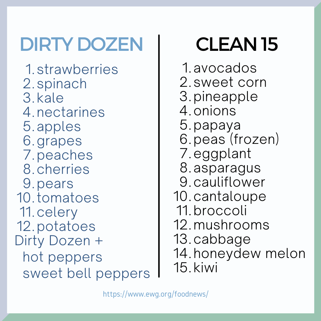 Keep in mind that EWG washes and peels (where applicable, i.e. bananas) all samples before they're tested. These steps reduce some pesticide exposure, but not all. Check out this post for more tips.