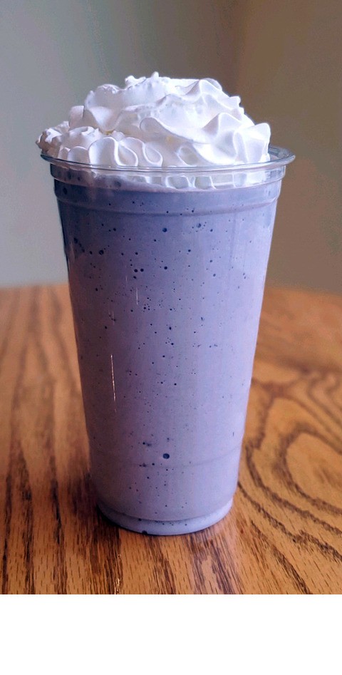Hudsonville Huckleberry ice cream blended, then topped with whipped