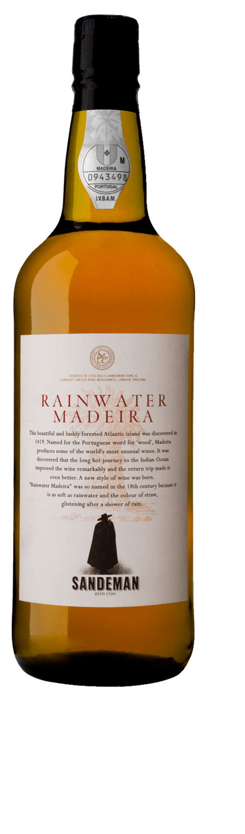 Medium-Dry Fortified Wine Rainwater Madeira. Sandeman - Madeira, Portugal This Wine Bar favorite has classic notes of caramel and nuts that are expected in a Madeira but with the bonus of hints of orange peel and nutmeg. The finish is clean as well as complex with lingering songs of raisins, and toffee.