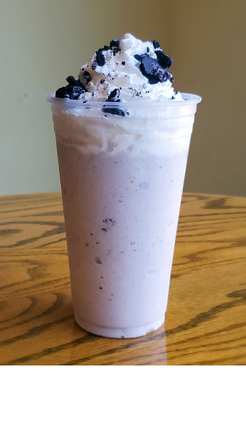 Glover's Cookies & Cream ice cream blended then topped with whipped