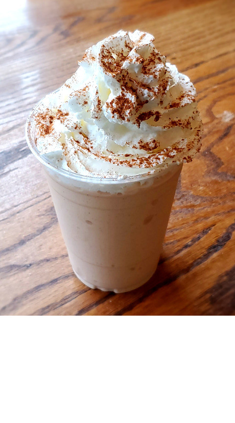 Glover's Pumpkin ice cream blended then topped with whipped cream and pumpkin pie