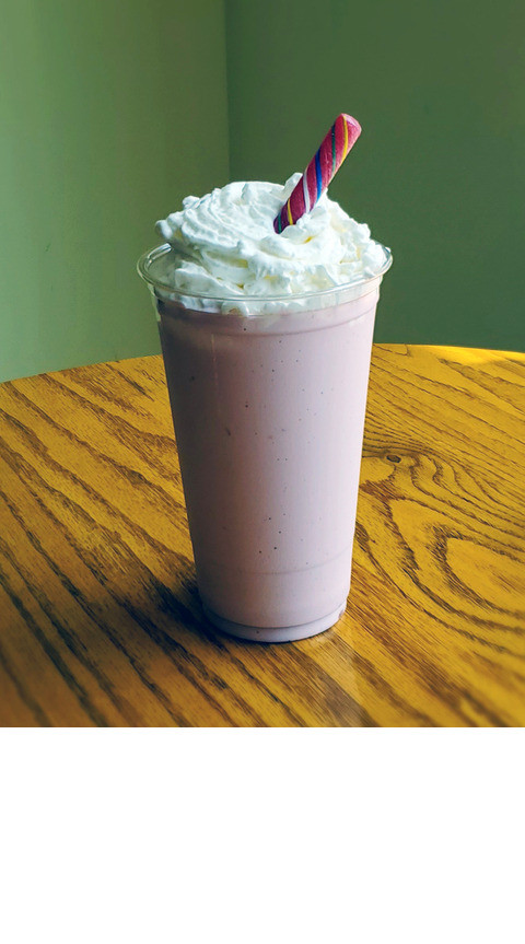 Glover's bubblegum flavored ice cream blended, then topped with whipped