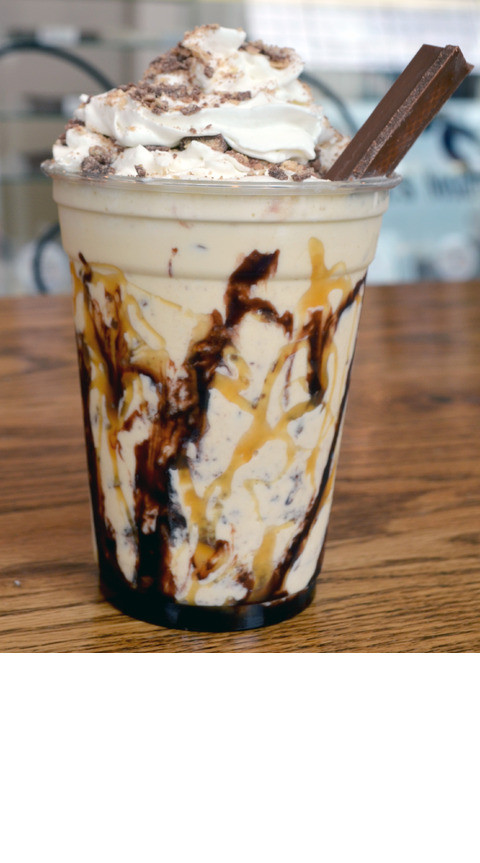 Vanilla ice cream blended with bits of Kit Kat, served in a glass