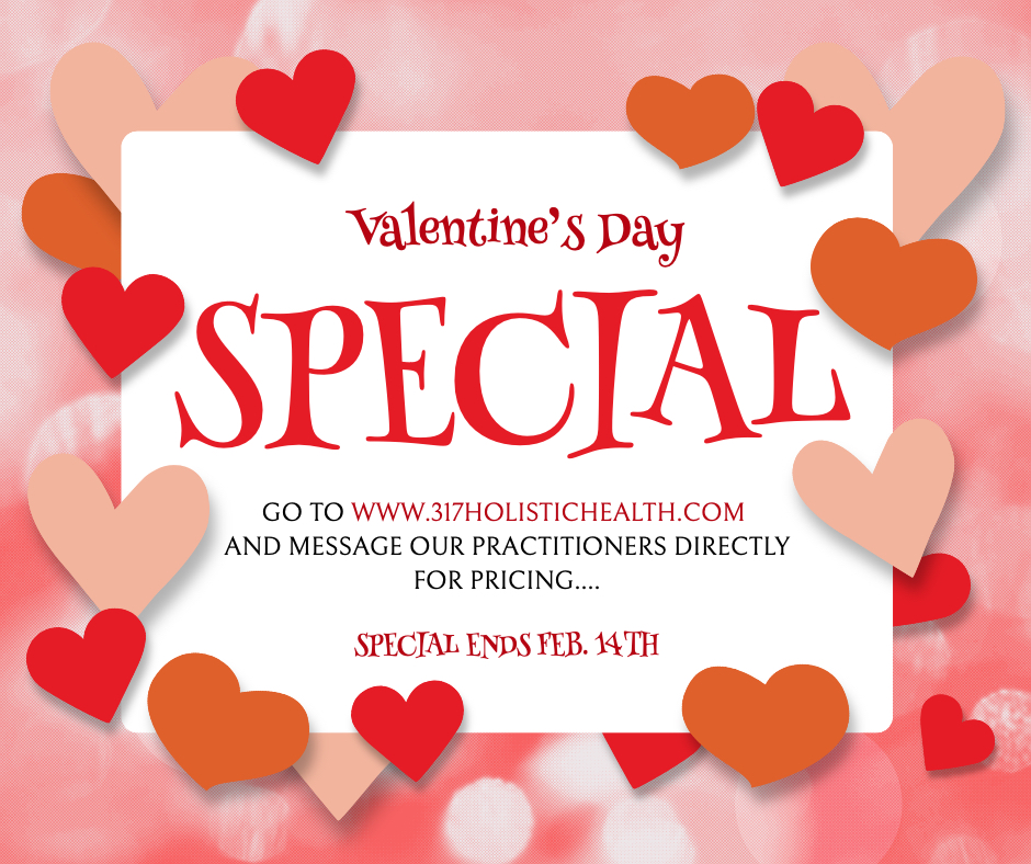 Question?What are you doing for Valentines Day?Do you already have a plan?We are offering our annual Valentines Day...SPECIAL!Please email or text us for details!Thank you!317 Holistic Health