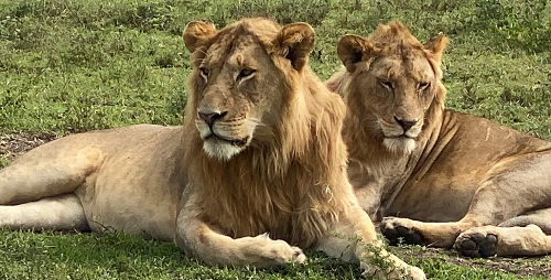 Each morning and late afternoon, we drive out to watch the animals in this completely natural and private setting (no other people, just us.) It feels deeply connecting to the earth and life. The weather is pleasantly warm, not too hot -- perfect. We also go to the world-famous, N'gorongoro Crater to stay at a lodge overlooking the enormous, beautiful crater for a few days at the end to see -- yes, more animals.