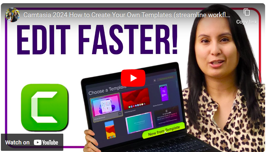 In this week’s video, I’ll show you how to create your own templates in Camtasia (version 2024 and above) so you can: